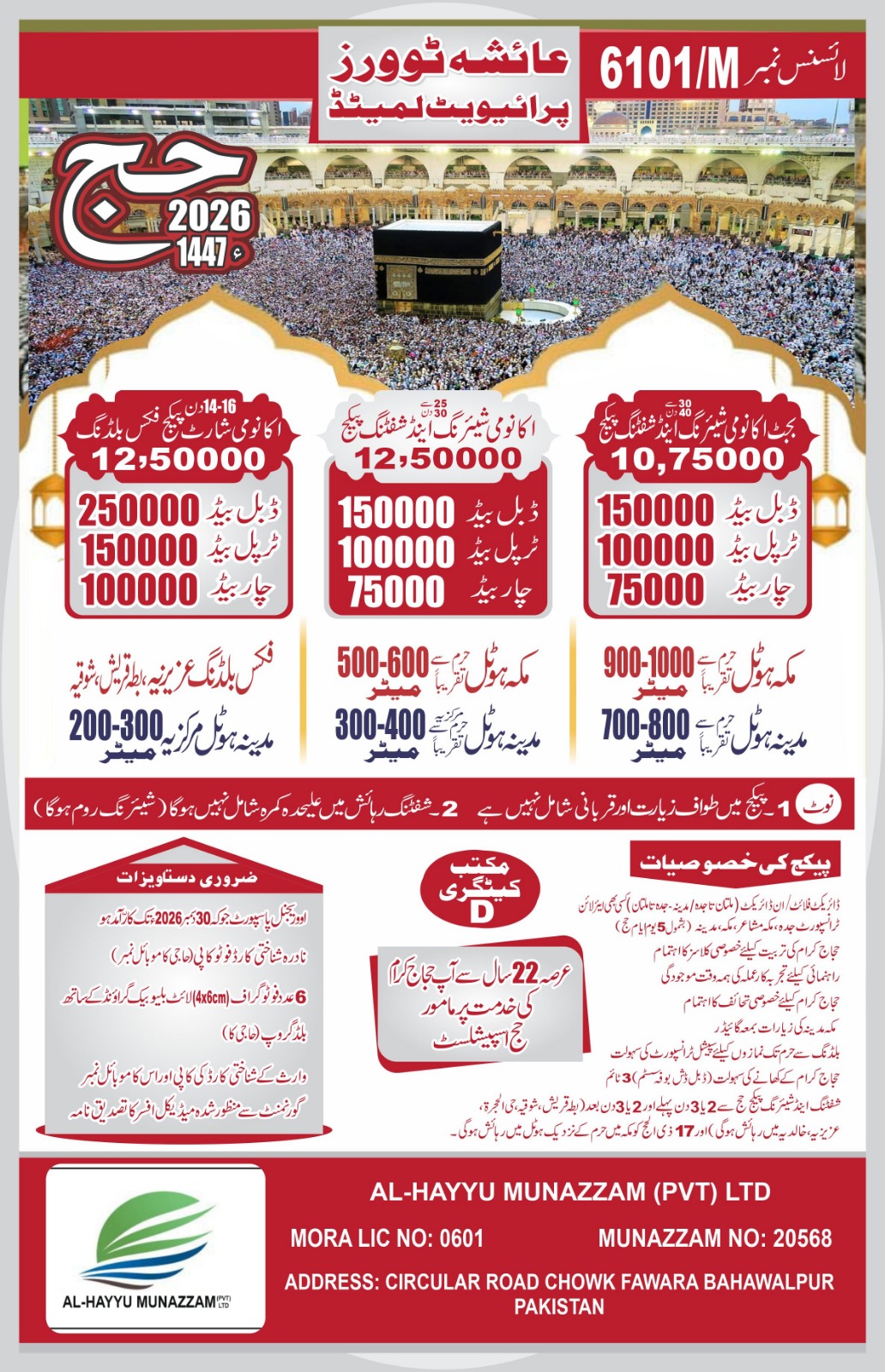 AYESHA TOURS (PVT) LTD ALL HAJJ DETAILS